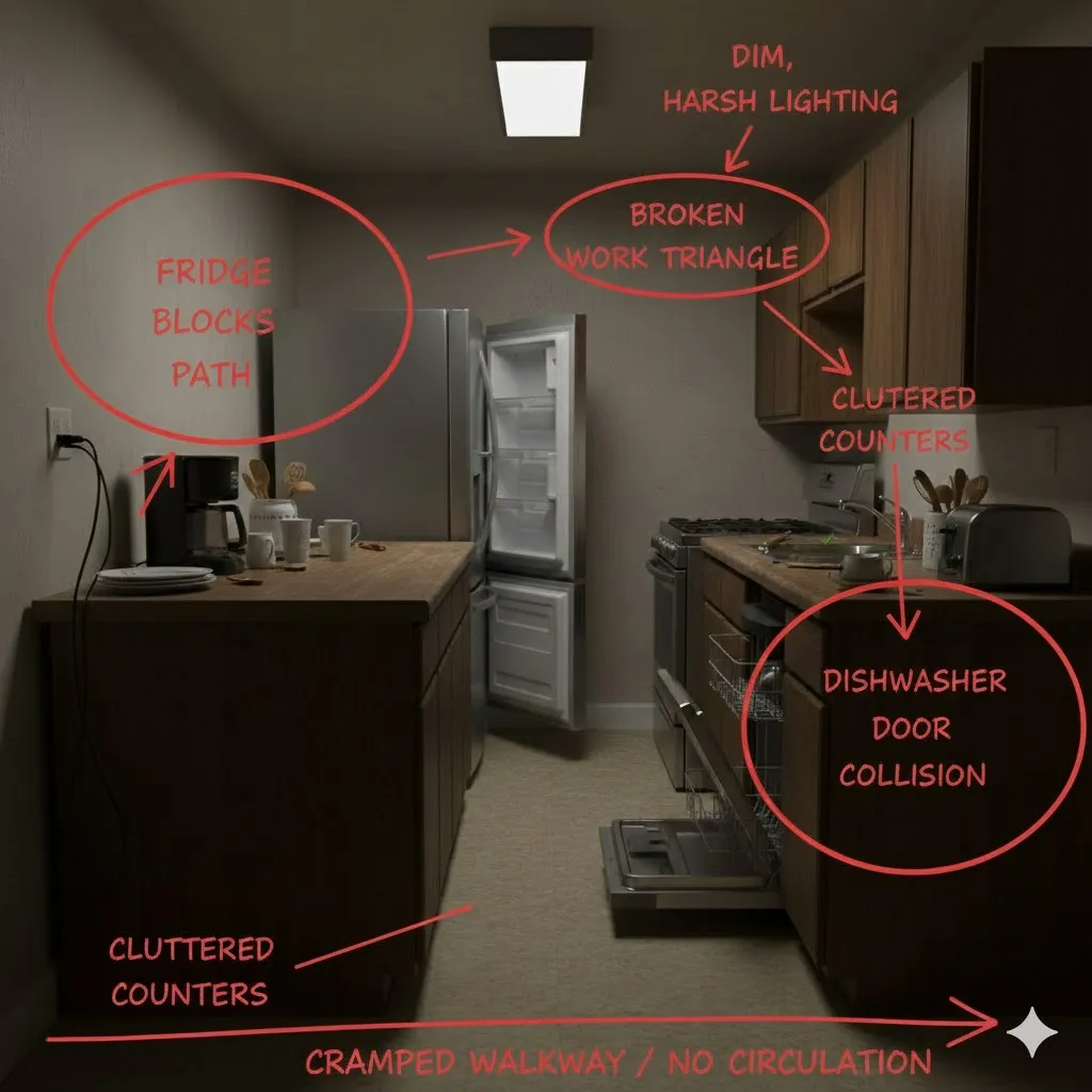 The designer spotted the kitchen circulation issue right away. Saved me from an $8,000 renovation mistake.