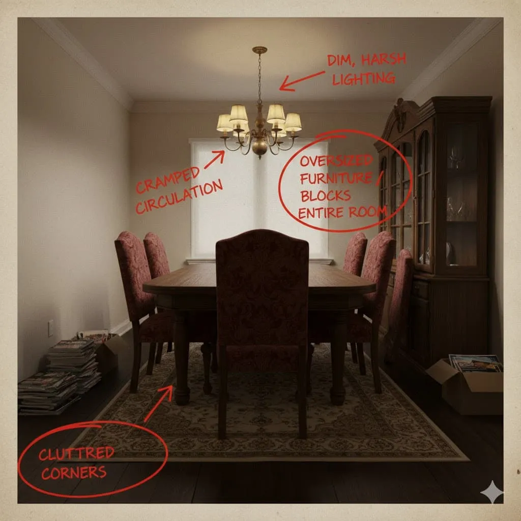 The advice on furniture scale was eye-opening. The layout suggested smaller, modular pieces for the dining area. Very helpful, practical advice.